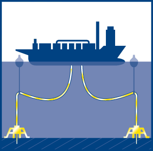 FPSOs (Floating Production Storage and Offloading vessels) are used to pump, store and load crude oil and natural gas. The technical equipment largely corresponds to that of offshore drilling and production platforms. FPSO ships frequently represent a more flexible and cost-efficient alternative to conventional platform designs.